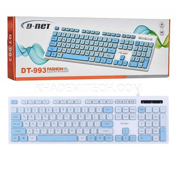 کیبورد سیم دار دی نت پلاس مدل +DT-993 D-NET سفید آبی